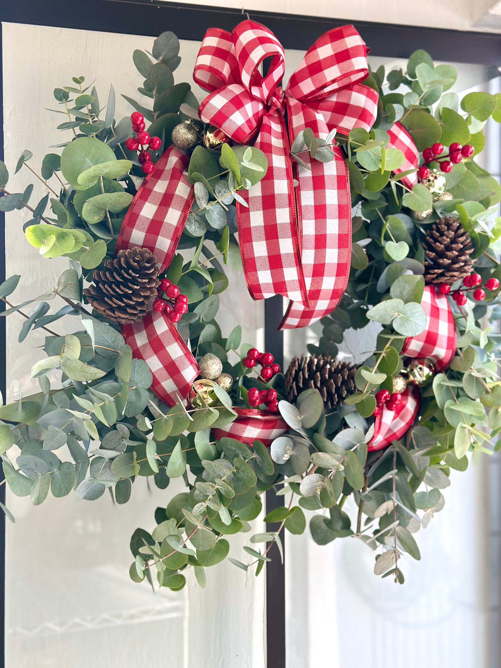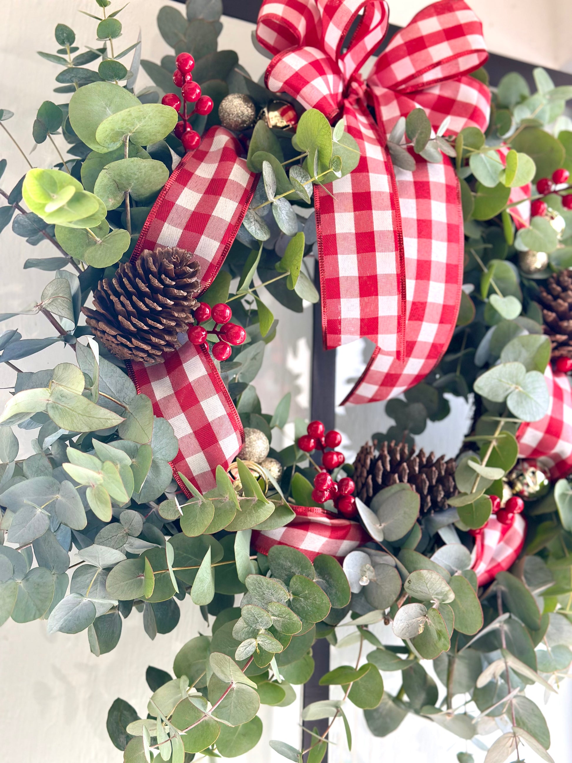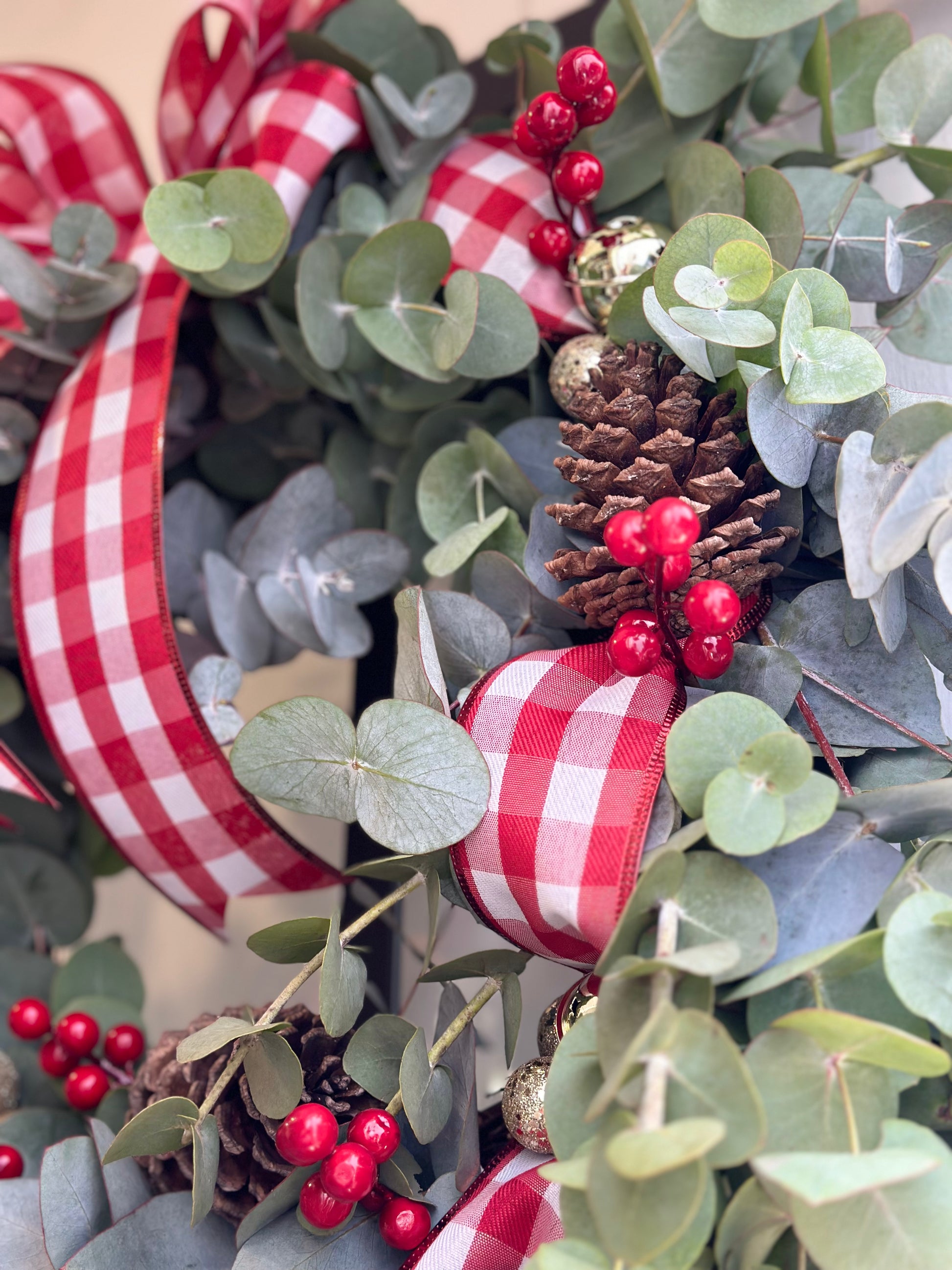 Lleva el aroma de la Navidad a tu hogar. Corona con follajes de eucaliptos