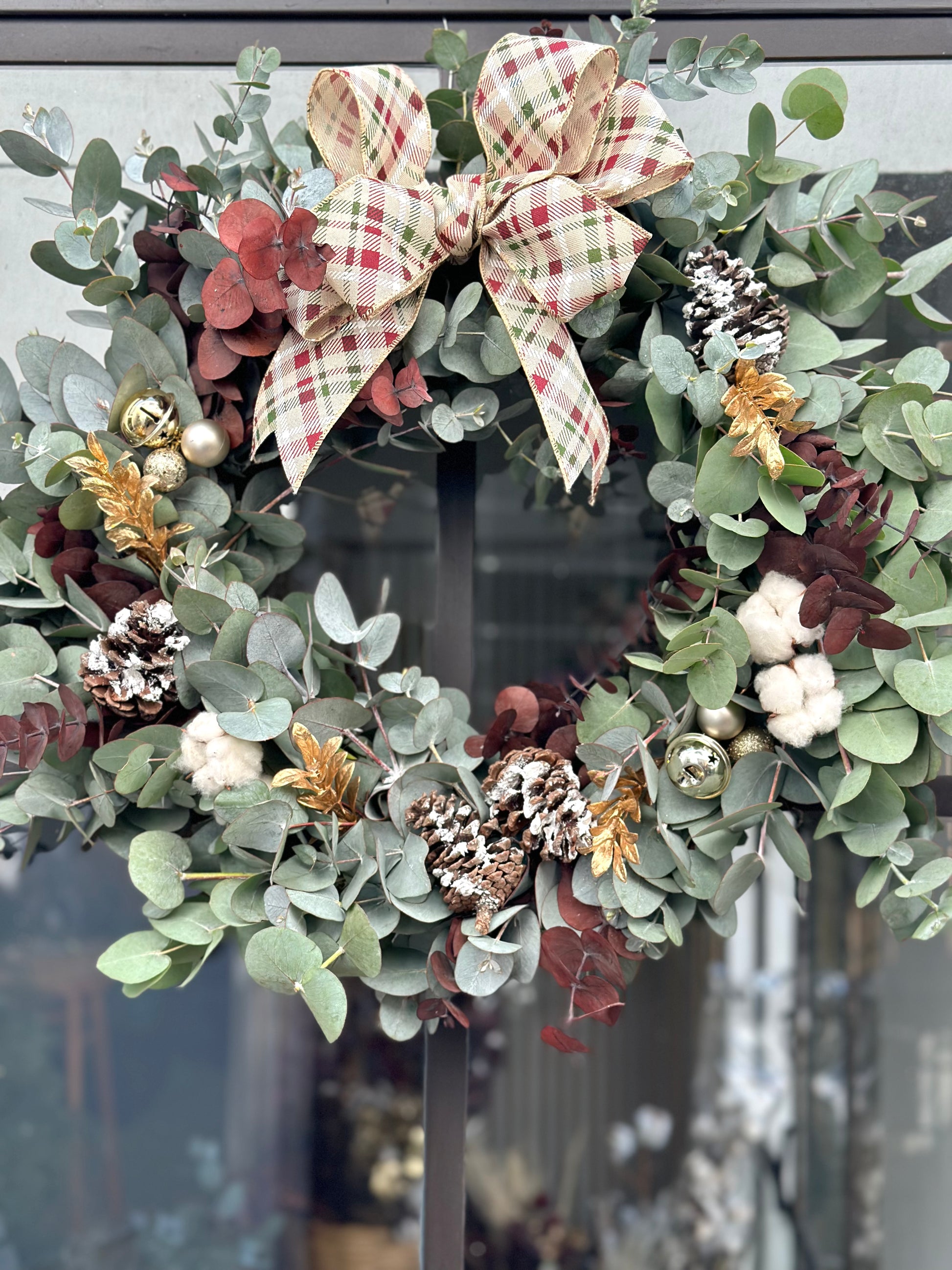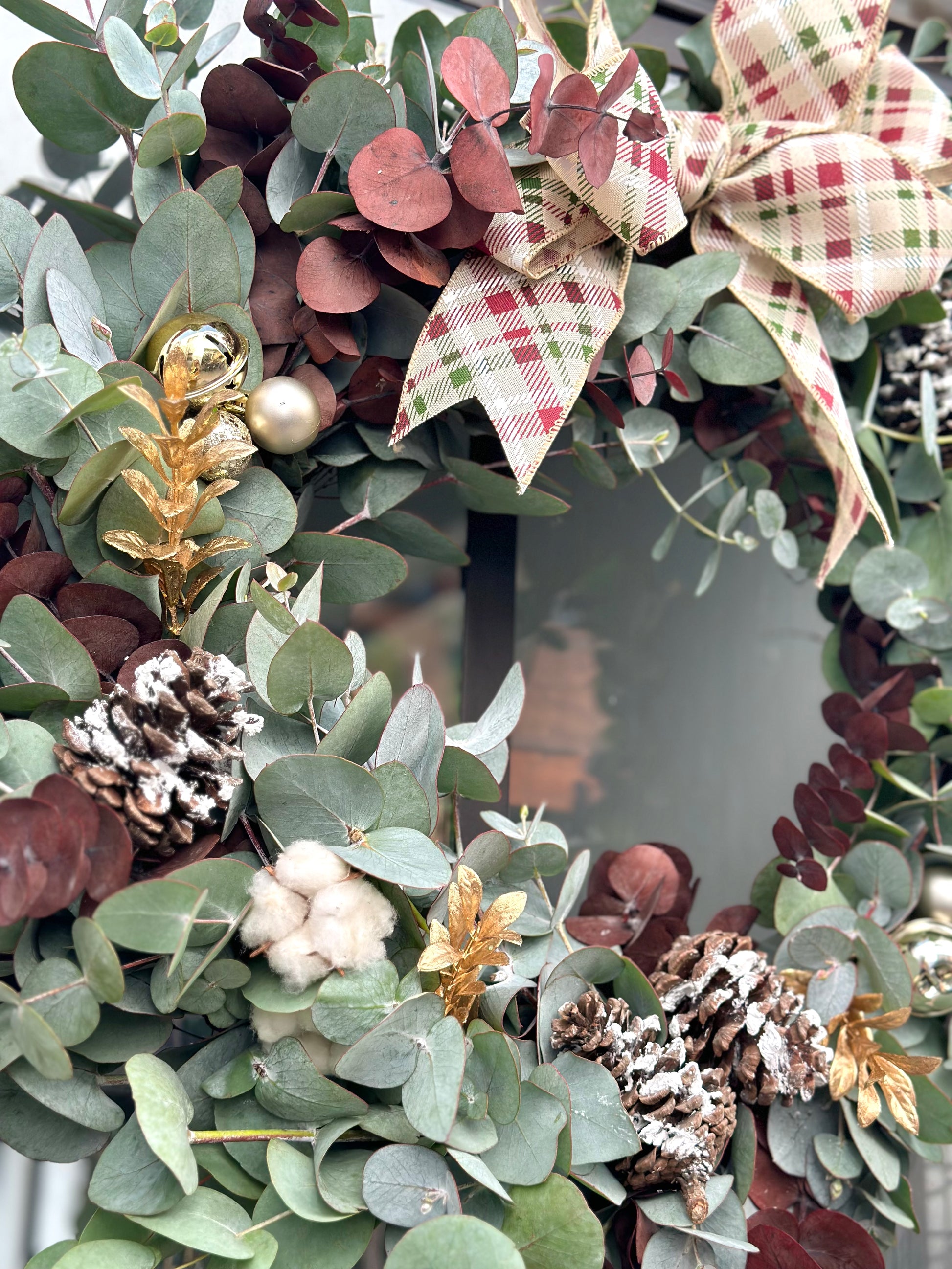 Lleva el aroma de la Navidad a tu hogar. Corona con follajes de eucaliptos
